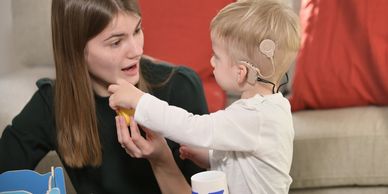 Therapy with children (birth through school age) focuses on improving language outcomes and speech perception skills, while coaching caregivers to utilize Listening and Spoken Language techniques within a variety of activities and daily routines.